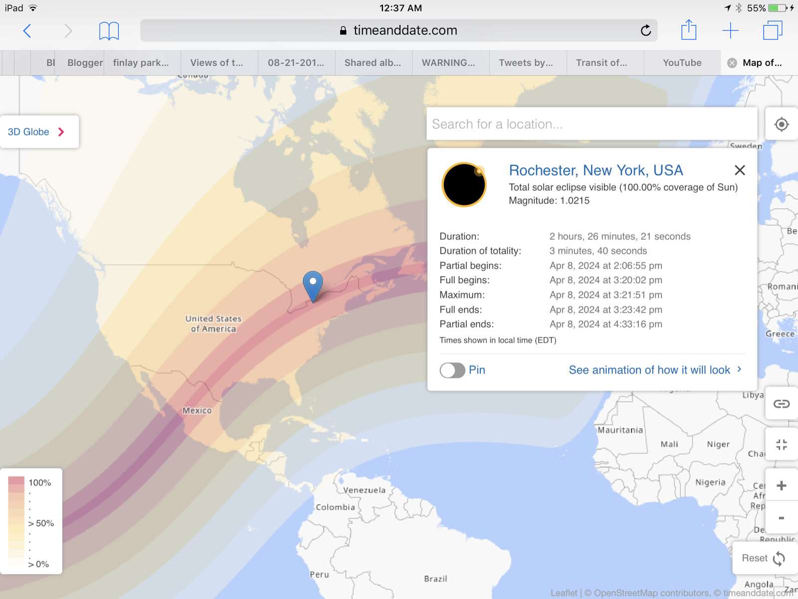 eclipse was by courtesy of the Hayden Planetarium and American Airlines. At